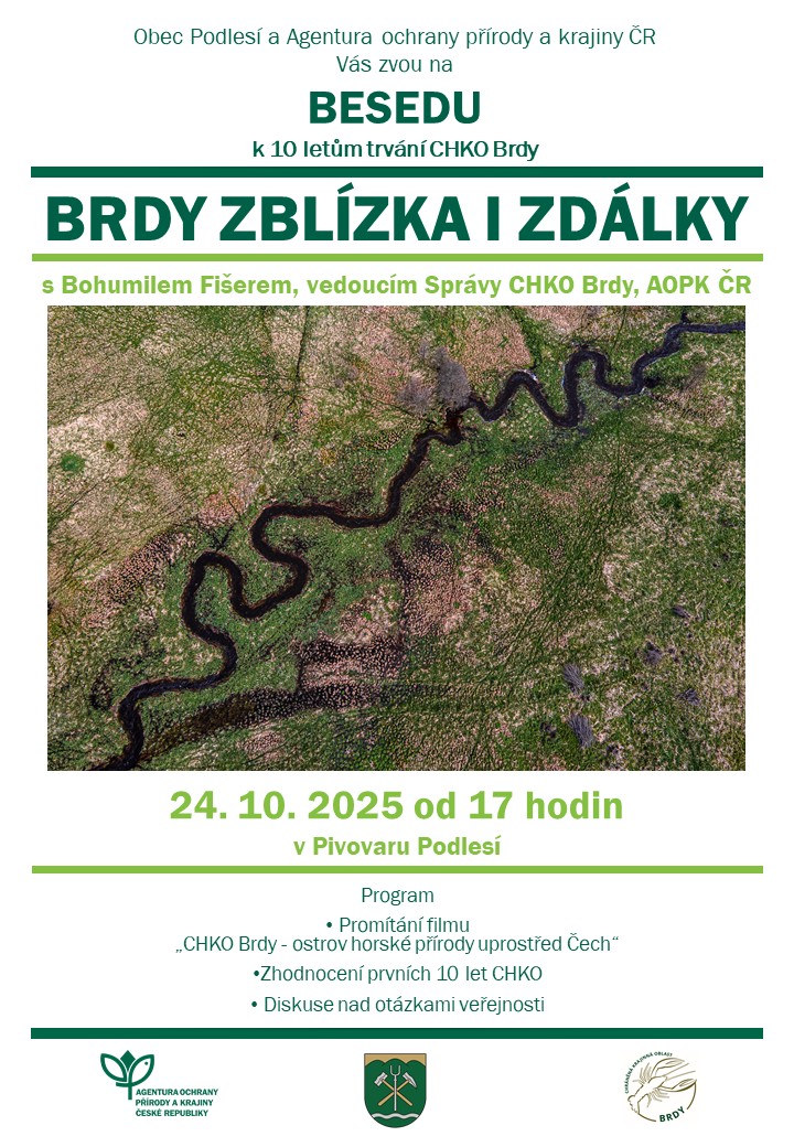 Ke konci se blíží 10. rok od vyhlášení Chráněné krajinné oblasti Brdy. Jak se toto území za tu dobu změnilo? Co se v ochraně přírody podařilo? Přijďte 24. října od 17 hodin do Pivovaru Podlesí pobesedovat s Bohumilem Fišerem, vedoucím Správy CHKO Brdy.