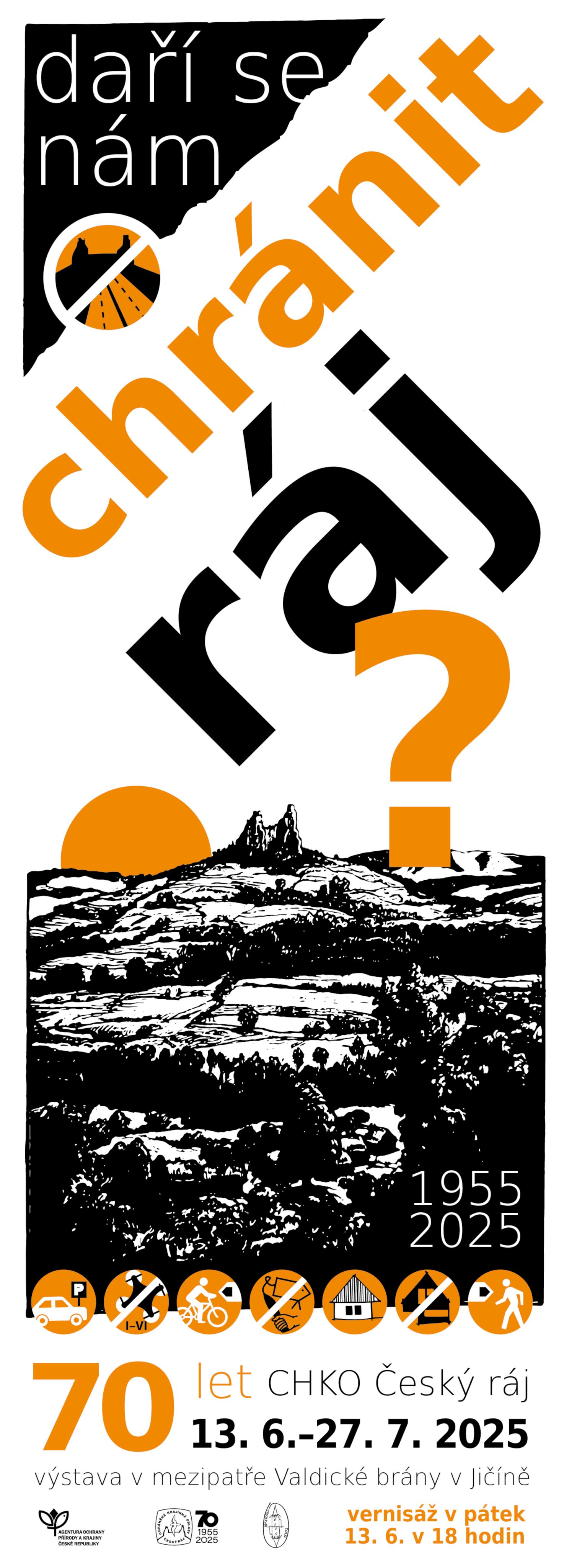 DAŘÍ SE NÁM CHRÁNIT RÁJ? K sedmdesátinám CHKO Český ráj jsme připravili výstavu. Představuje práci v ochraně přírody a krajiny Českého ráje v uplynulých desetiletích. Přijďte se podívat. Výstavu lze shlédnout od 13. 6. do 27. 7. 2025 na Valdické bráně v Jičíně, od 9. 8. do 3. 9. v Regionálním turistickém informačním centru v Turnově, od 12. 9. do 5. 10. na zámku v Mnichově Hradišti a v říjnu v Sobotce. |