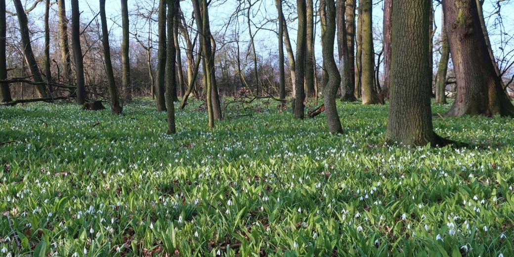 V lužních lesích převládají staré listnaté stromy. Pod nimi od konce zimy do jara dominuje bílá barva – záplavu sněženek postupně vystřídá hustý koberec květů česneku medvědího. Staré stromy a rozpadající se dřevo jsou domovem vzácných brouků. Zajímavostí je hnízdo orla mořského, do kterého lze nahlédnout z vlaku projíždějícího po hranici rezervace,“ popisuje Ivona Kneblová.