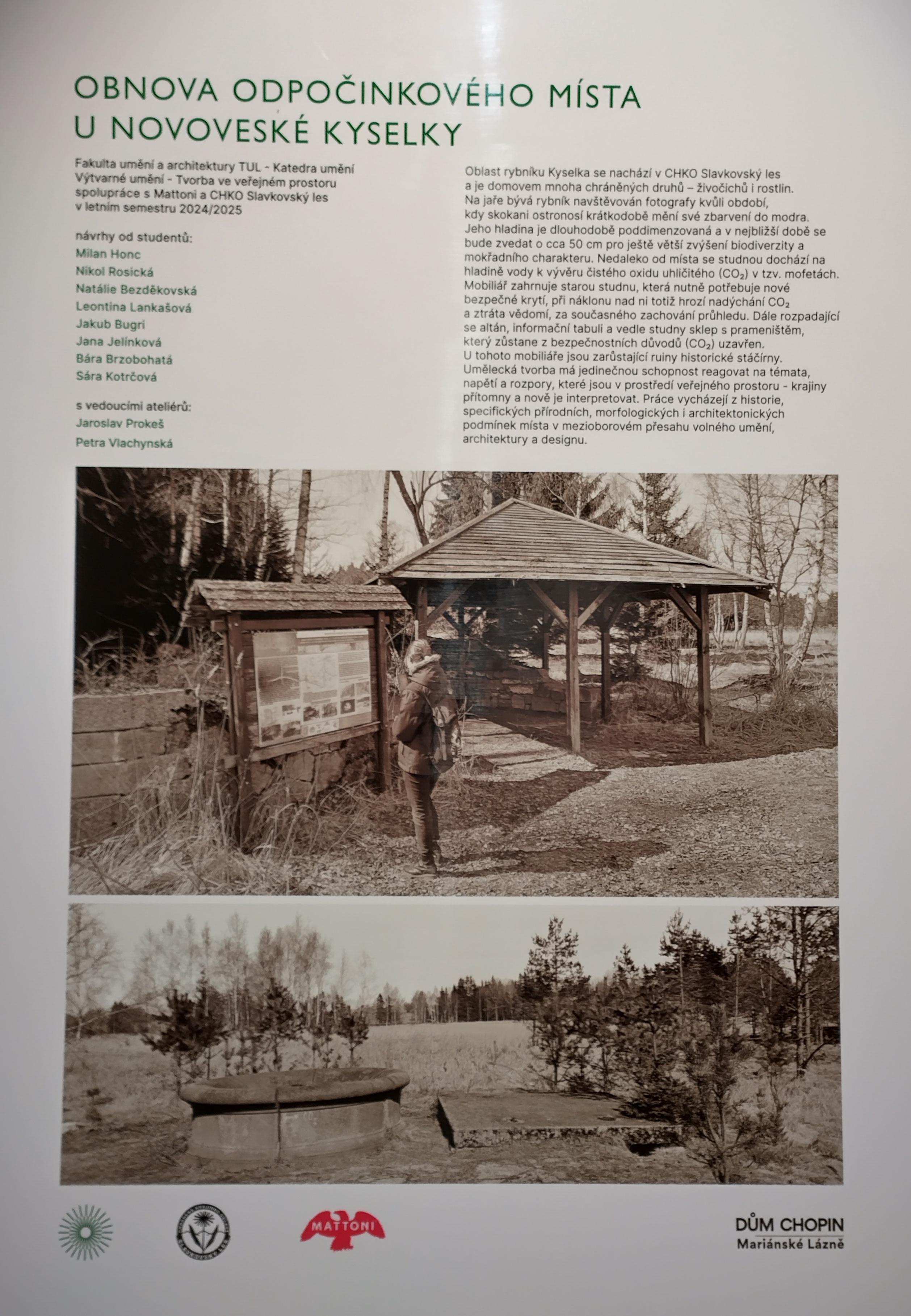 Součástí projektu je také výstava „Obnova odpočinkového místa u Novoveské Kyselky“, která představuje všech osm studentských návrhů.